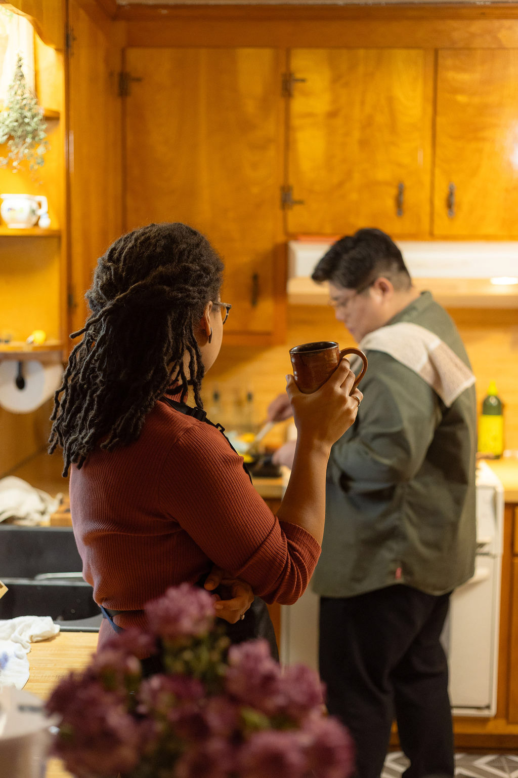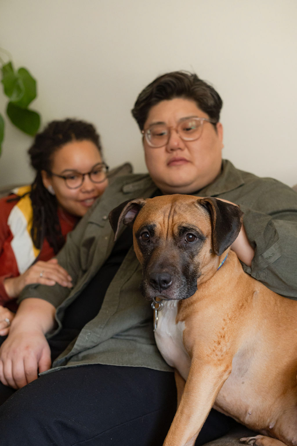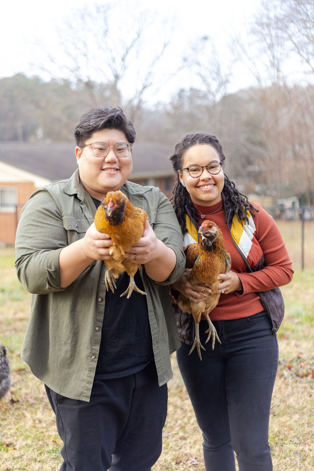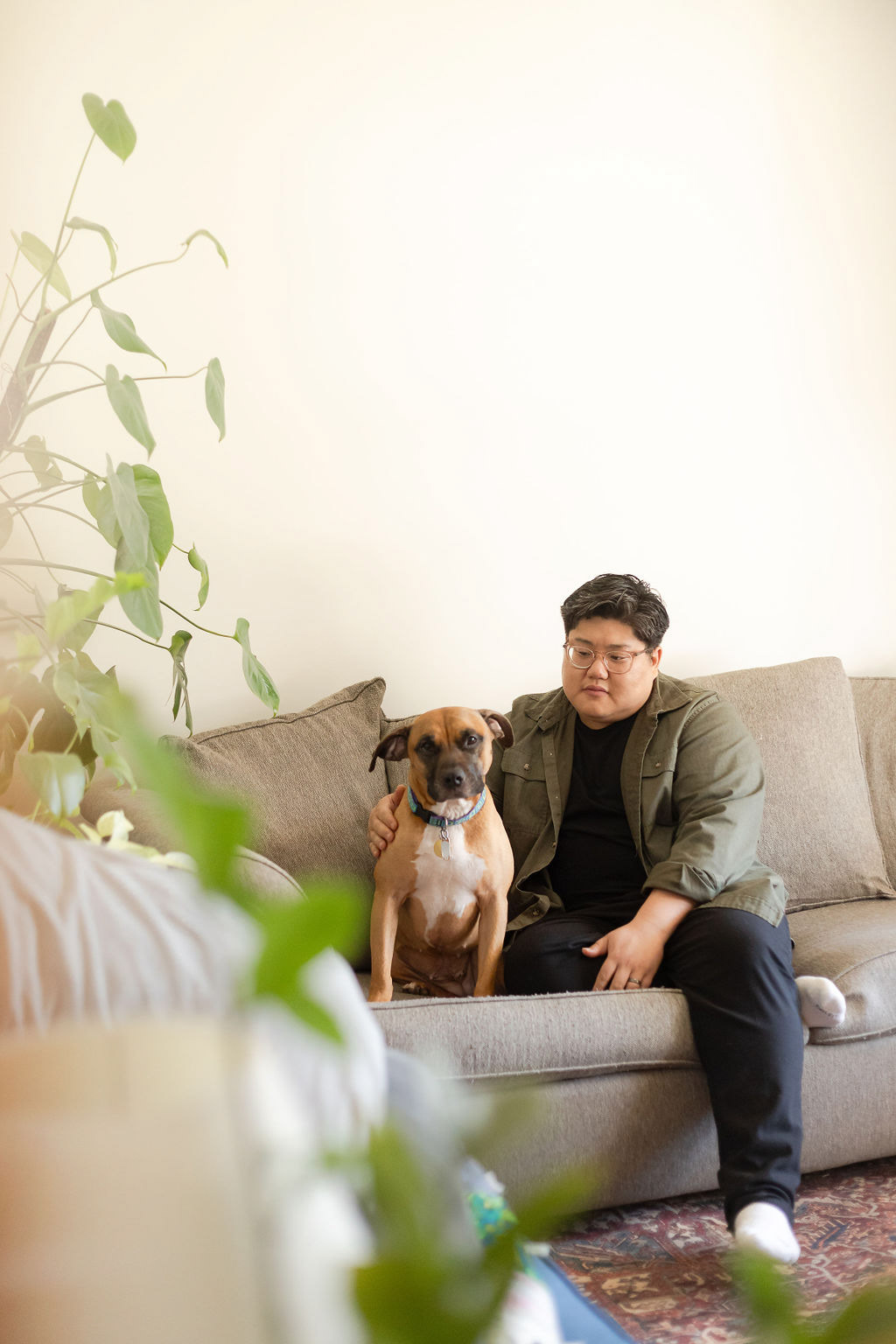 Laid-back, in-home sessions like this are always fun to capture. Even though this couple had never done a photoshoot before and felt a bit camera-shy at first, it wasn't long until we were getting effortless moments that reflected their everyday life together with their pup and chickens.